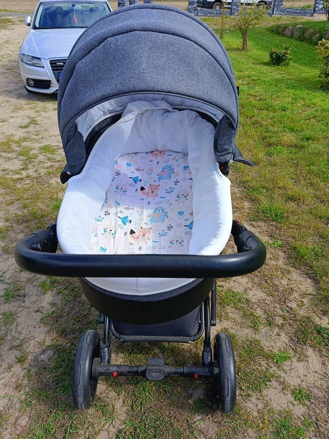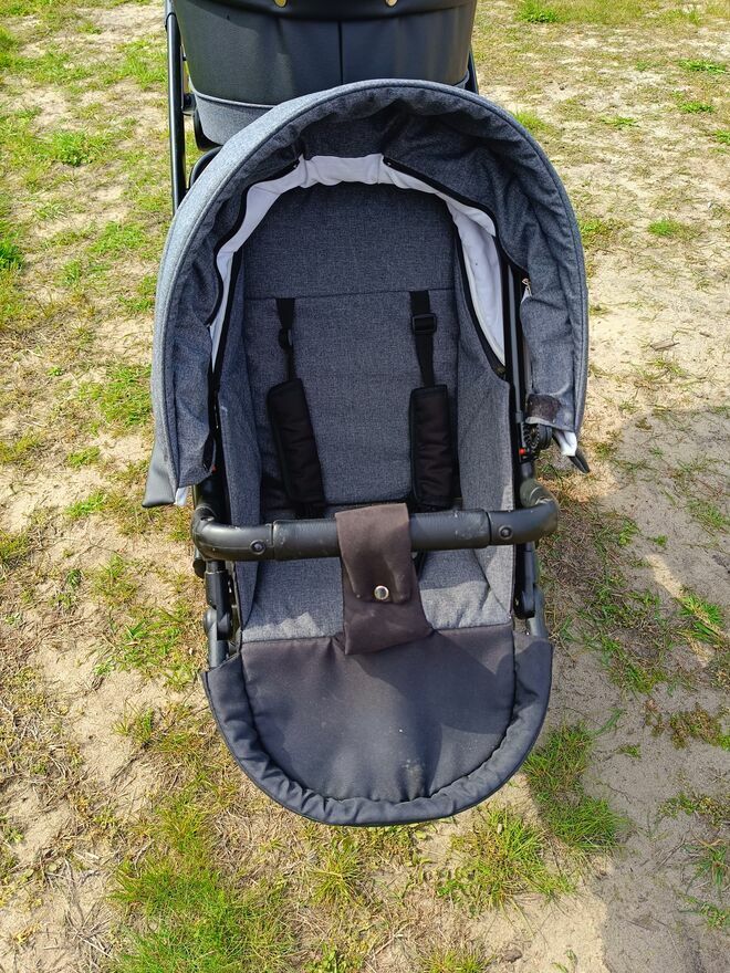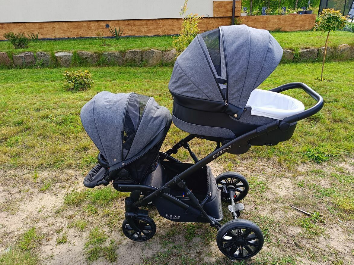 Sprzedam wózek bliźniaczy/ rok po roku. Użytkowany tylko 5 miesięcy. Użyta tylko jedna gondola i jedna spacerówka. Pozostałe części zamknięte we folii.Karolina